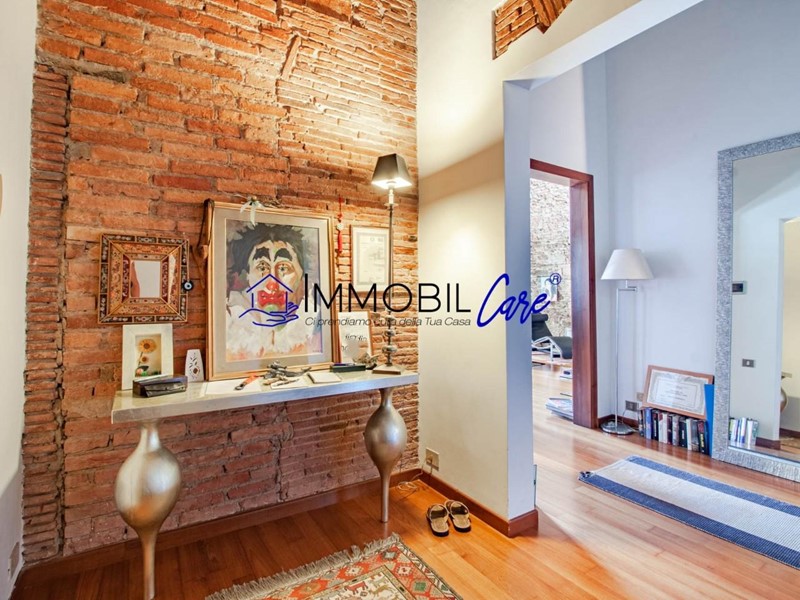 Ristrutturato, l’appartamento unisce il fascino storico ai comfort contemporanei, con travi a vista e parquet in tutte le stanze.
