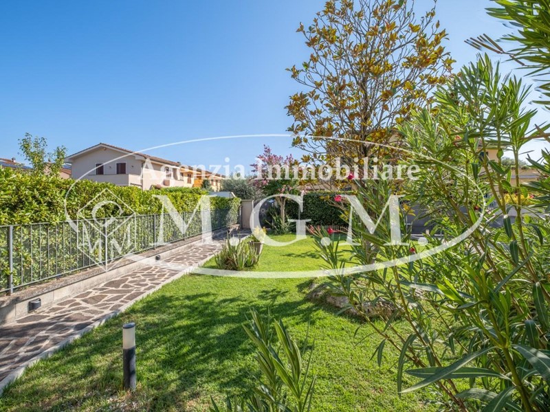 L’immobile è corredato da ampio giardino completamente recintato e ottimamente realizzato a sud della casa, in parte adibito a parcheggio auto.