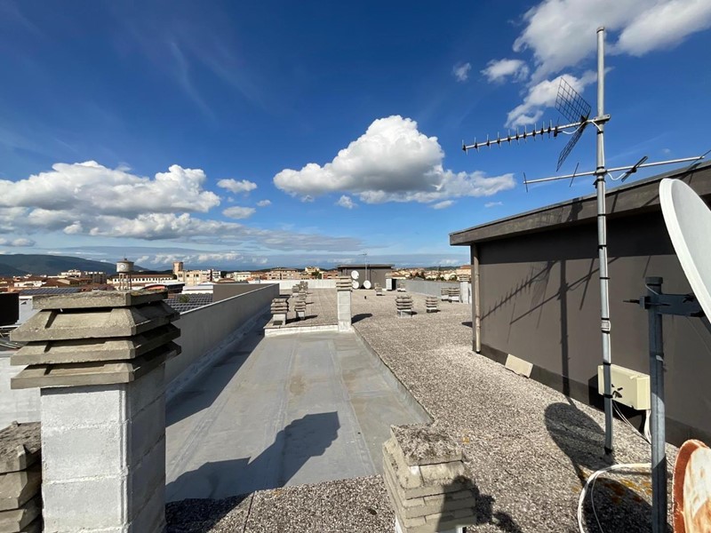 Pontedera zona Ospedale - NOSTRA ESCLUSIVA - appartamento di 100 mq. circa (superficie commerciale circa 110 mq.) in ottimo stato di manutenzione, ideale per famiglie o come investimento per eesere affittato, si trova all'ultimo piano (quarto) del palazzo, e ha l' ascensore. L'immobile, costruito nel 2009 ha belle finiture (pavimenti in parquet nel reparto notte, climatizzatori, ecc.). L'appartamento si compone di ingresso in ampio soggiorno con bella terrazza coperta vivibile, cucina abitabile con balcone, disimpegno notte, 2 camere, ripostiglio e 2 bagni. Sono annessi in proprietà esclusiva due locali cantinetta e un posto auto coperto al piano interrato del fabbriccato, raggiungibili sia attraverso il vano scala, l'ascensore e la rampa carrabile. L'appartamento trovandosi all'ultimo L'ultimo piano garantisce luminosità e ariosità. Bellissima terrazza condominiale facilmente accessibile. L'appartamento viene venduto completamente ammobilato con arredamento di qualità. Classe energetica D. Prezzo di vendita: 195.000 Euro tratt.