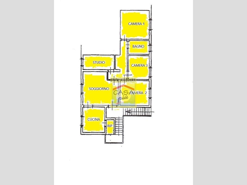 Appartamento duplex al primo piano – 120 mq ca. - Accessibile da scala esterna condivisa con l'unità sovrastante, si sviluppa su un unico livello abitativo composto da Ingresso su ampio soggiorno, Cucina abitabile con ripostiglio/dispensa, Studio e/o quarta camera, Disimpegno notte, Bagno finestrato con doccia, Tre camere matrimoniali di generose dimensioni. Ristrutturato negli anni ’80, l’appartamento è subito abitabile e dotato di impianto di riscaldamento autonomo.