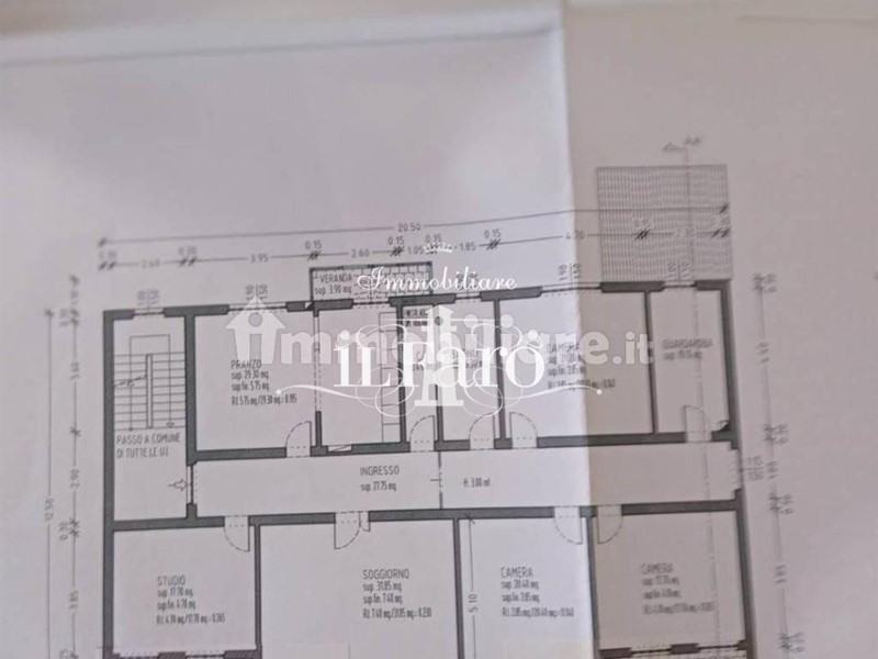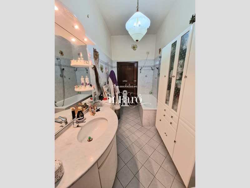 L'immobile è cosi composto: ingresso con divisione giorno e notte, quattro camere da letto ( TRE MATRIMONIALI E UNA SINGOLA ), uno studio, salone doppio di circa 32 mq, zona pranzo/soggiorno e doppi servizi entrambi finestrati. Al piano terreno troviamo invece il giardino che circonda su due lati l'abitazione e uno splendido GARAGE di 50 mq. circa ( attualmente utilizzato come taverna con cucina e salotto e caminetto)