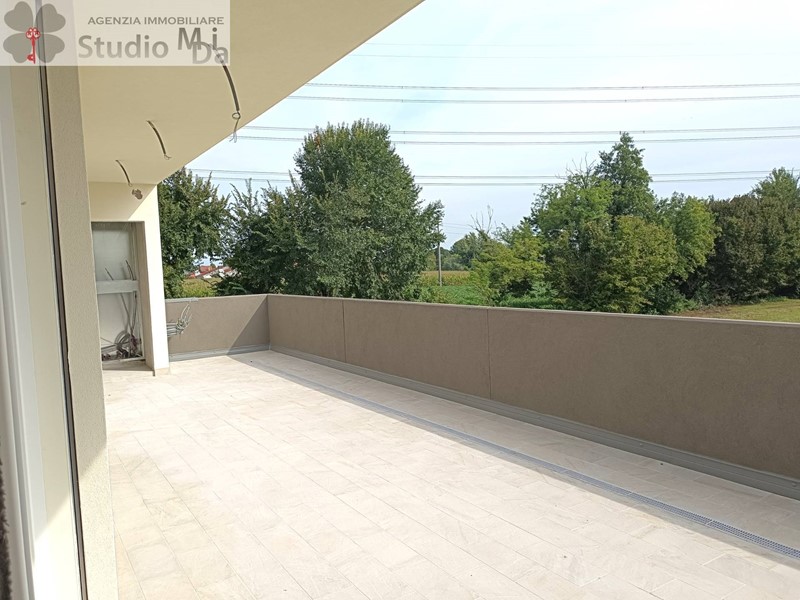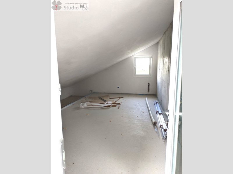 Mogliano Veneto periferia in Via Canaletto , nuovo appartamento/attico di mq.115 di calpestio in fase di ultimazione situato al primo piano di una palazzina di sole 3 unità abitative. Ha l'ingresso indipendente al piano terra con scoperto esclusivo di mq.43 e garage di mq.15,30 più vano tecnico sottoscala. Piano primo con terrazzo d'ingresso di mq. 14 e locale mansardato di mq.23 ad uso studio/eventuale 4° camera, soggiorno/cottura di mq.38 che affaccia su terrazza esposizione sud di mq. 45, camera matrimoniale, 2 camere singole, 2 bagni. E dotata di riscaldamento a pavimento in pompa di calore, raffrescamento canalizzato in ogni stanza, VMC (ventilazione meccanica controllata), impianto fotovoltaico autonomo 6,16 KW. Nessuna spesa condominiale.