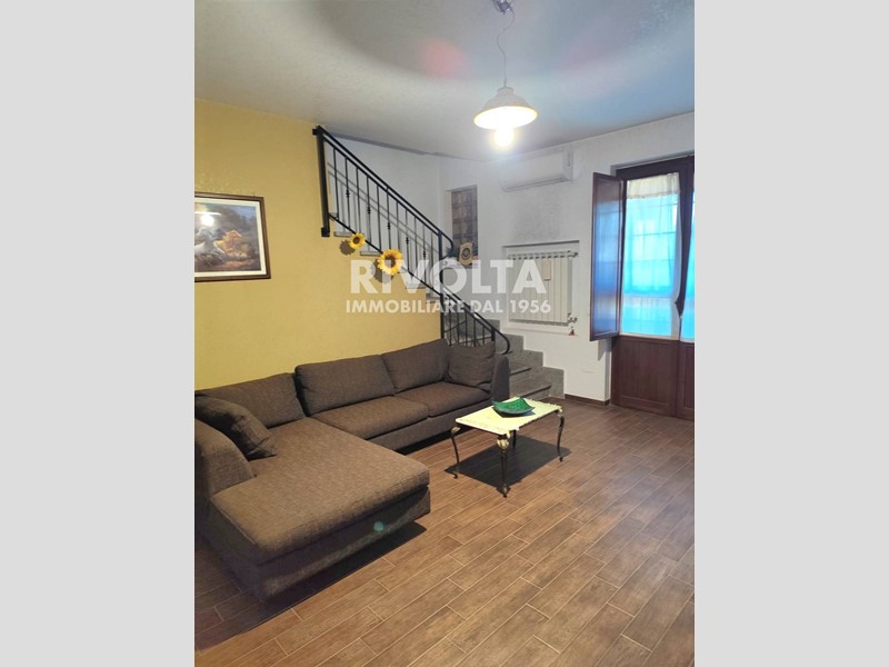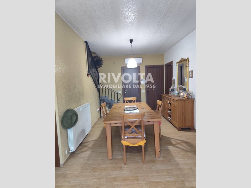 L'interno è così composto: l'ingresso da su un ampio leaving, una camera e un bagno che serve il livello. Da qui si accede tramite scala ad una deliziosa mansarda con 2 camere, di cui una con balcone e un bagno. Sempre dall'ingresso si scende di un livello per accedere ad una taverna con ampia portafinestra, cucina completa di arredamento un bagno e 3 ripostigli, il tutto per una metratura di circa 160 mq. Completa la proprietà una tettoia in legno nella parte antistante la proprietà per il posteggio di 3 auto. L'immobile è dell'anno 2002, è stato ristrutturato nel 2013 e si presenta in discrete condizioni.