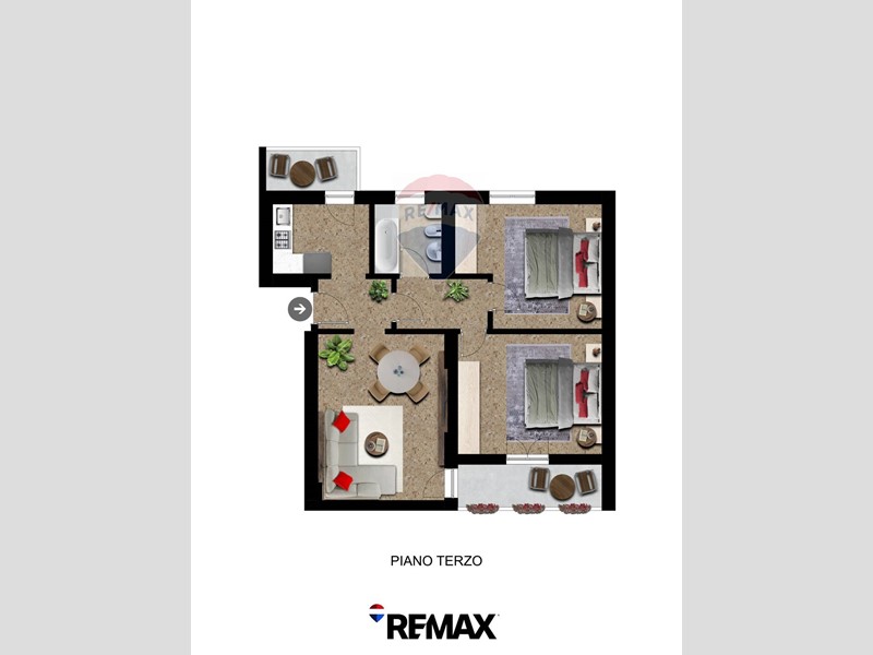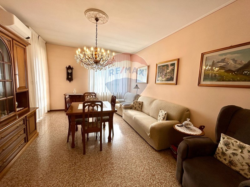 Limmobile viene venduto completo di arredo, ha una superficie di circa 75 mq ed è composto da ingresso, soggiorno spazioso e molto luminoso con accesso diretto al balcone, cucina separata con uscita su un secondo balconcino, disimpegno, due grandi camere matrimoniali e bagno finestrato con vasca. La casa è pronta fin da subito per essere abitata e si presenta con serramenti in legno con doppi vetri, pavimenti in graniglia, aria condizionata con pompa di calore in soggiorno e in camera, riscaldamento centralizzato con valvole termostatiche che registrano il consumo effettivo di ogni locale.