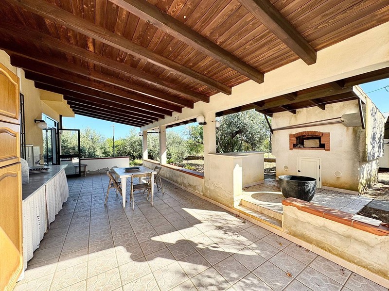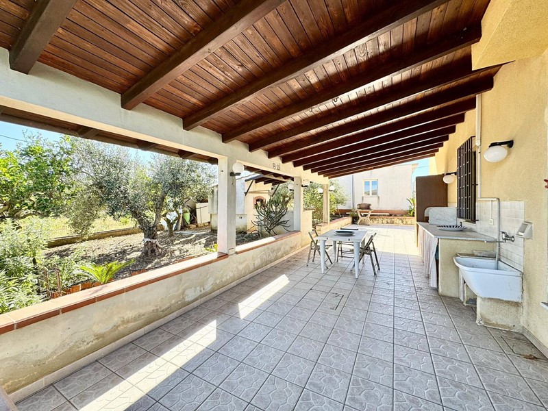 In vendita una villa unifamiliare con dependance, situata nelle campagne circostanti e godente di una comoda viabilità in prossimità dello svincolo di Balestrate. Lingresso avviene tramite cancello carraio che immette in una pratica area parcheggio. A sinistra si estende un ampio giardino ben curato con ulivi, alberi da frutto e piante ornamentali; a destra troviamo un portico in legno con zona barbecue ideale per pranzi e cene allaperto con amici e parenti, adiacente troviamo una veranda che porta allingresso della villa.