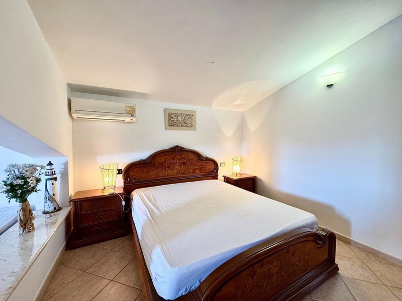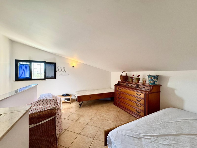 Una scala interna conduce alla zona mansardata, dove si trovano altre due camere da letto, un ampio bagno e un comodo terrazzo panoramico. Da qui è possibile godere di una vista mare e dello scenario del Golfo di Castellammare, con scorci suggestivi sullorizzonte.