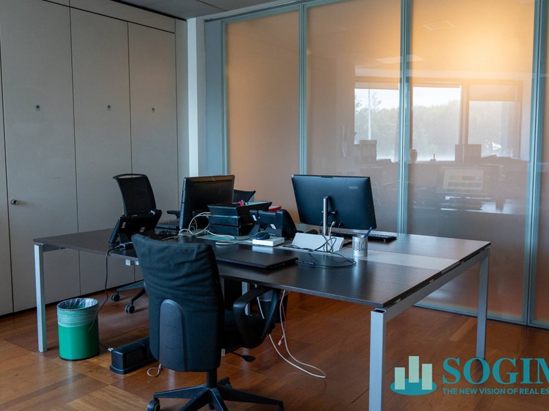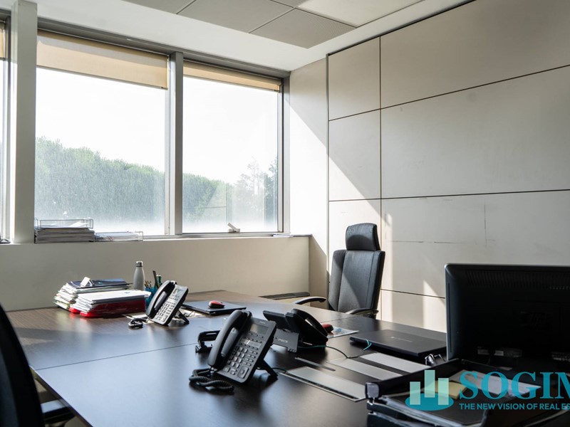 L'immobile, luminoso e funzionale, è completo di pavimento sopraelevato, controsoffitto tecnico, cablaggio dati e fonia, impianto di climatizzazione e sistema di allarme e controllo accessi con badge.