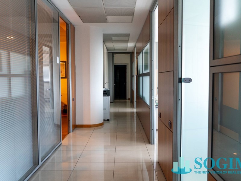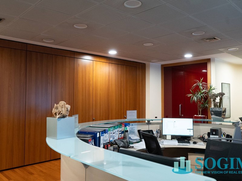 Per trasferimento sede direzionale, si propone in locazione o vendita moderno ufficio open space completamente arredato, suddiviso con pareti mobili, di circa 368 mq al 1° piano di un centro direzionale di elevato prestigio, dotato di doppi ascensori.