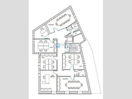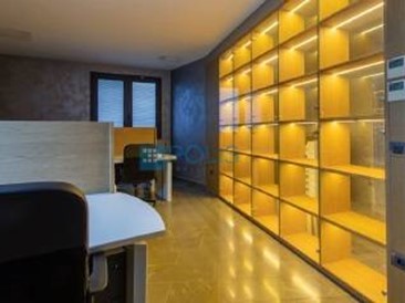 Lufficio, di 230 mq commerciali, è articolato in spazi funzionali: ingresso/reception, 5 ampi uffici, un ufficio open space, una sala riunioni, un ripostiglio e due bagni con antibagno.