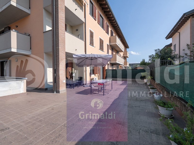 IN TRATTATIVA Nella tranquillità del comune di Castiraga Vidardo, NON FATEVI SFUGGIRE il delizioso TRILOCALE al PIANO TERRA SENZA BARRIERE ARCHITETTONICHE con AREA PRIVATA TERRAZZATA/CORTILIZIA piastrellata di 100 MQ. A solo un km da S.Angelo Lod raggiungibile con la comoda pista ciclabile a 200 m dall' abitazione in vendita Ad uso abitativo, un vero gioiello di 3 locali con zona living open space composto da lunga parete cucina a vista e spazioso soggiorno, ampio bagno con doccia idromassaggio, offre uno spazio accogliente e funzionale per una famiglia o una coppia in cerca di comfort e comodità. Le due camere da letto garantiscono privacy e relax con accesso diretto al cortile, mentre il luminoso soggiorno con cucina a vista è perfetto per momenti conviviali e di relax collegato anch'esso al cortile/terrazzo da una balconata tramite la luminosissima portafinestra .