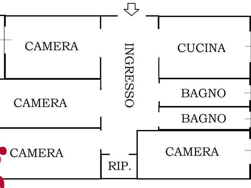 COMPOSIZIONE INTERNA: doppia esposizione, ingresso, cucina abitabile, quattro camere singole, doppi servizi (uno con vasca ed uno con box doccia), due balconi;