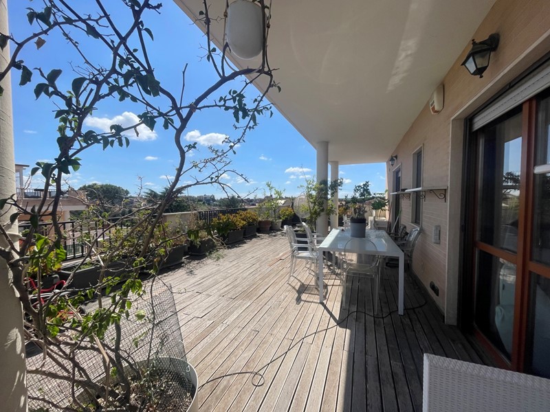 Roma: Via Alessandro Santini, la Grimaldi immobiliare propone in vendita un attico e superattico di 117 mq commerciali interni, piano secondo e terzo, in una palazzina dotata da ascensore. Al secondo piano è composto da salone doppio con angolo cottura, bagno, camera, terrazzo a livello di 180 mq, ed un balcone; al piano secondo collegato da una scala interna da una camera molto grande con bagno en suite e terrazzo di 80 mq. L'abitazione è di recente costruzione, ambiente signorile, molto luminosa, climatizzata e con delle ottime rifiniture, i pavimenti sono in parquet, e si trova all'interno di un complesso residenziale esclusivo. Completano la proprietà due posti auto scoperti, e vi è inoltre la possibilità di acquistare un box di 14 mq. Un'opportunità unica chiamaci per fissare un appuntamento. Classe energetica B