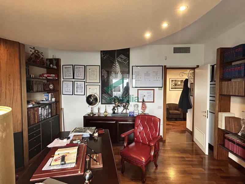 L’ufficio si sviluppa su una superficie di 170 mq, sapientemente distribuiti in quattro ampie camere luminose, una sala riunioni di rappresentanza e due bagni. Gli spazi, caratterizzati da doppi affacci panoramici, garantiscono luminosità naturale per tutto l’arco della giornata, creando un contesto piacevole e produttivo.