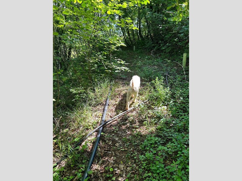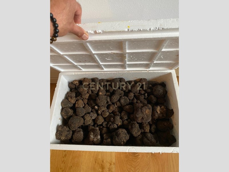 Completa di impianto di irrigazione a caduta con vasche di accumulo per lo stemperamento, rimessa per gli attrezzi nuova, bosco di proprietà completamente recintato e riconosciuto come tartufaia naturale.