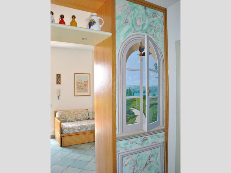 L'ingresso dell'appartamento si apre su una accogliente zona giorno, arredata con gusto e collegata con la cucina completamente attrezzata.