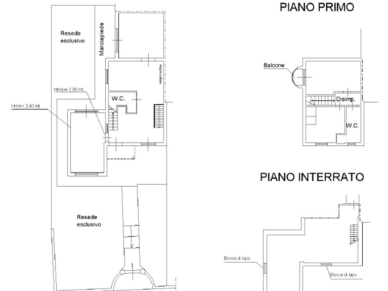 Al piano interrato, sempre fruibile dall'interno abitazione mediante scala e parapetto di design in legno, troviamo la TAVERNA con bocche di lupo.