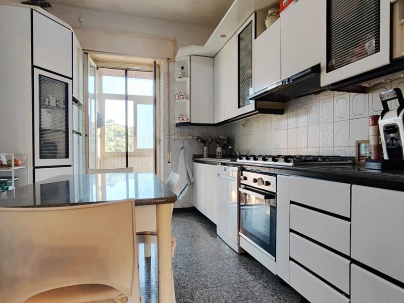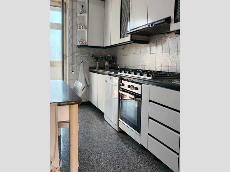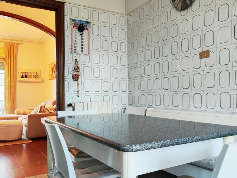 Cucina abitabile con ampio balcone, perfetta per pranzi e cene in famiglia.