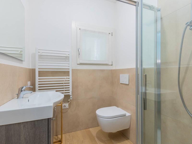 Salendo al piano superiore, si sviluppa la zona notte, composta da due camere da letto e un secondo bagno completo, dal quale si accede a una terrazza funzionale ideale per stendere la biancheria, ma anche per creare un angolo relax con qualche pianta e una sedia a sdraio.