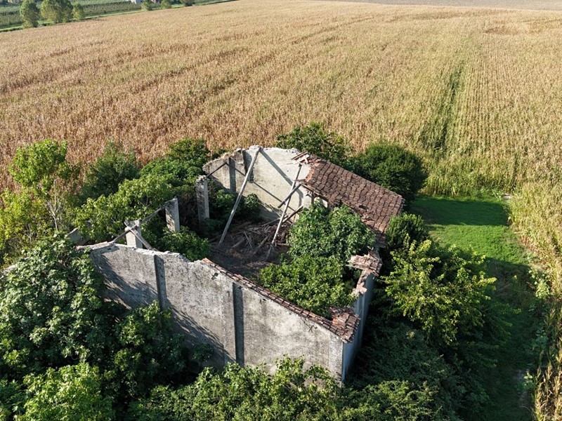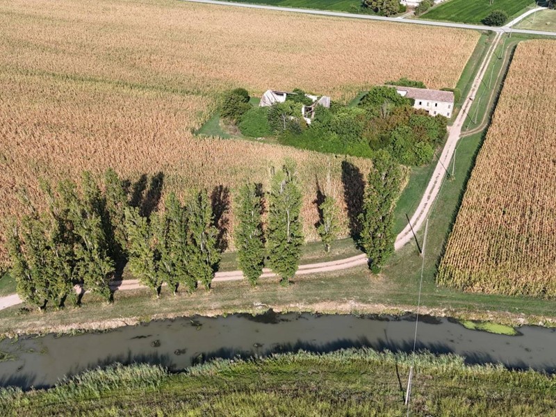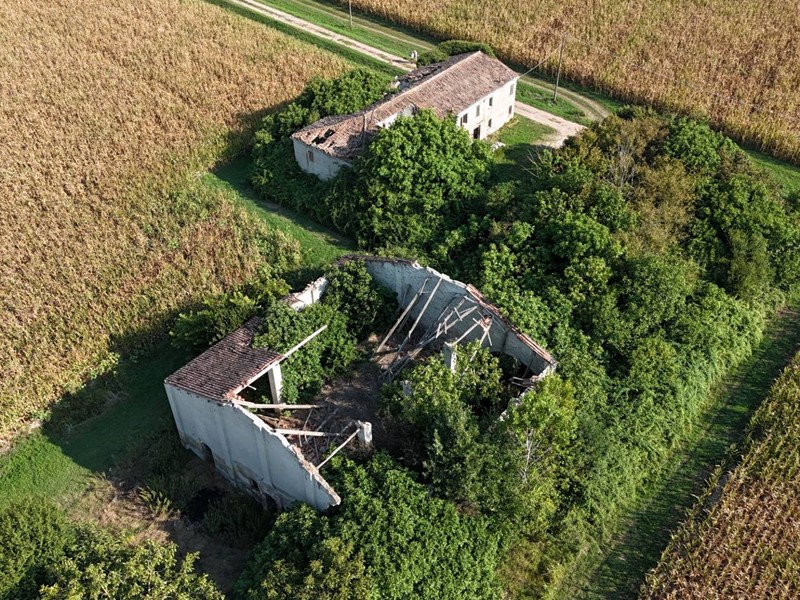AC331 - Nelle vicinanze di Baura, VIA DUE TORRI, immerso nel verde e nella tranquillità della campagna Ferrarese, vendesi caratteristico complesso immobiliare in corte colonica, costituito da una grande casa colonica padronale di mq.380 e da un fienile disposto su 2 livelli di mq.530. I fabbricati sono attualmente accatastati come "edifici collabenti" e possono essere ricostruiti rispettando le caratteristiche e le volumetrie esistenti. Completa la proprietà uno scoperto di circa mq.3300 con possibilità di acquistare altro terreno adiacente. .80.000