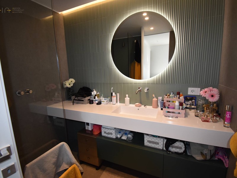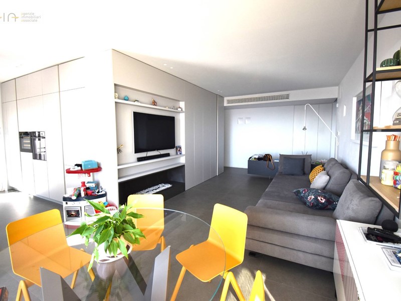 Con una superficie totale di 130 metri quadrati, l'immobile si sviluppa su un piano alto, il quinto di un totale di sette. L'ingresso si apre su un ampio e luminoso soggiorno, caratterizzato da finiture di pregio e da un'ottima esposizione a sud est, che garantisce una splendida luminosità durante tutto il giorno e stupenda vista mare.