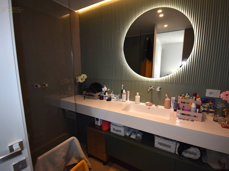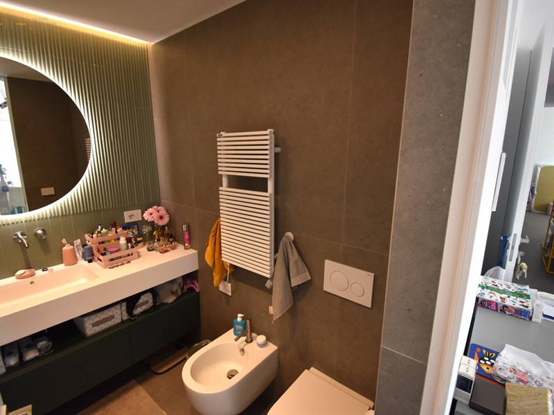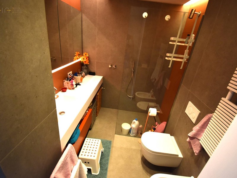 Sono presenti due bagni, entrambi finemente rifiniti e dotati di comodi box doccia, di cui uno si trova nella camera matrimoniale. L'appartamento è dotato di un impianto a pavimento, che garantisce un'ottima diffusione del calore in ogni ambiente, e di un sistema di riscaldamento autonomo a metano, per un maggiore risparmio energetico. Gli infissi e le finestre sono in PVC, garantendo un ottimo isolamento termico e acustico.