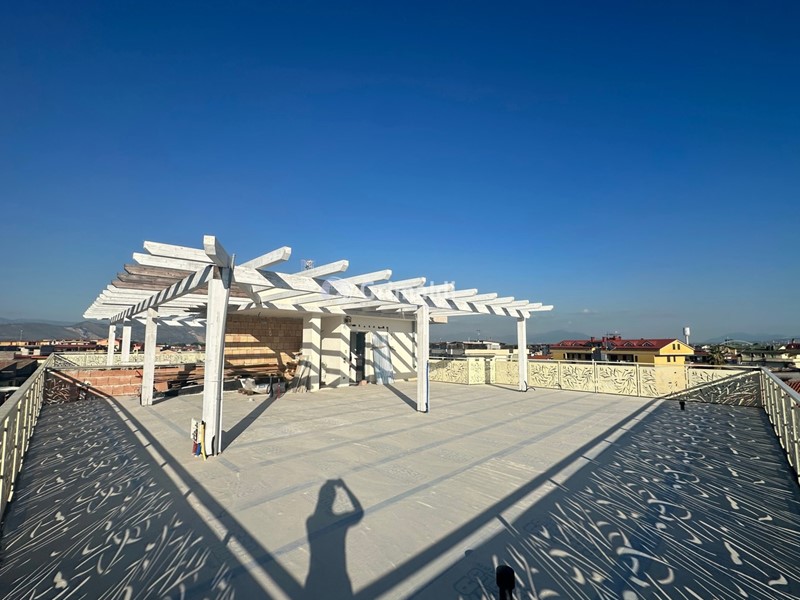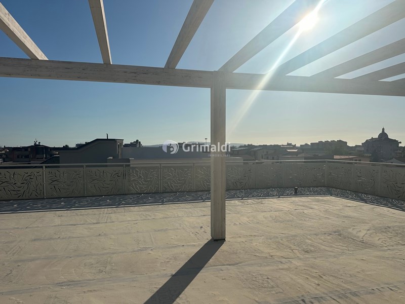 Il terrazzo è in parte coperto da elegante pergolato, completamente piastrellato e dotato di punti acqua, luce e gas, perfetto per essere attrezzato come zona relax, cucina esterna o solarium. Uno spazio unico per godere della massima privacy e vivere l'aria aperta in ogni stagione.