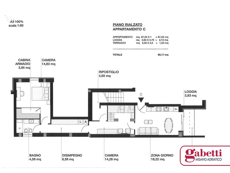 Trilocale in Vendita a Cattolica, 300'000€, 90 m², arredato