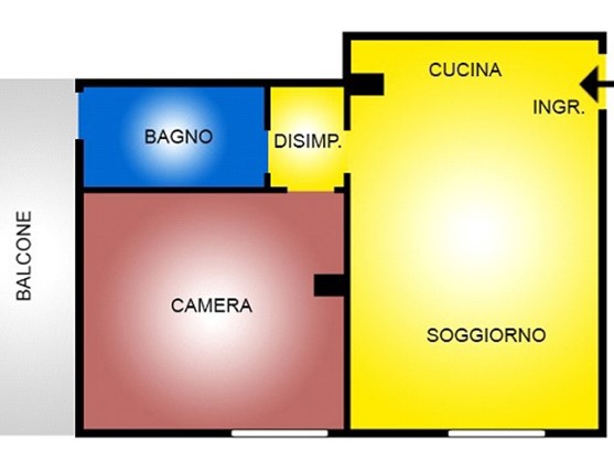 L'immobile è composto da: ingresso che conduce alla zona giorno con soggiorno e cucina a vista, un disimpegno con pratico angolo lavanderia, una spaziosa camera matrimoniale e un bagno finestrato.