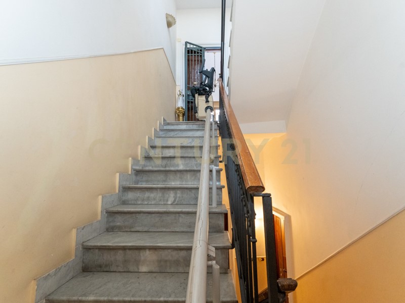 L' immobile con una metratura di c.a. 170 mq interni, si presenta da rimodernare e ci accoglie al suo interno, con accesso da doppio ingresso, su un ampio salone di oltre 3 vani con affaccio su strada grazie a due balconi separati, camera da letto matrimoniale con cabina armadio, seconda e terza camera da letto, servizio di rappresentanza, lavanderia, doppio servizio e due comodi ripostigli.