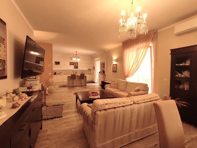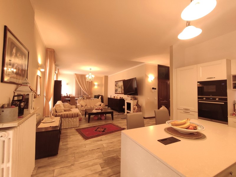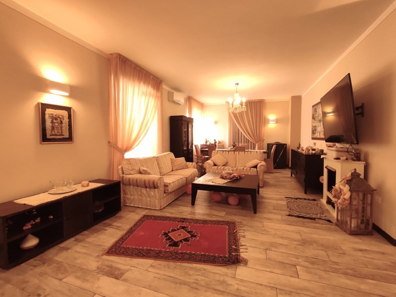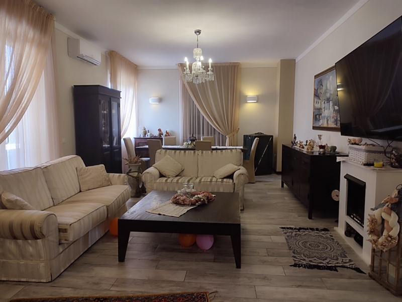 È composta al piano rialzato da luminoso salone e cucina open space, bagno con vasca, due camere matrimoniali, guardaroba adibito a terza camera e ripostiglio.