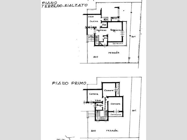 PRIMO PIANO: disimpegno - tre camere matrimoniali, due delle quali con affaccio su balcone - bagno finestrato.
