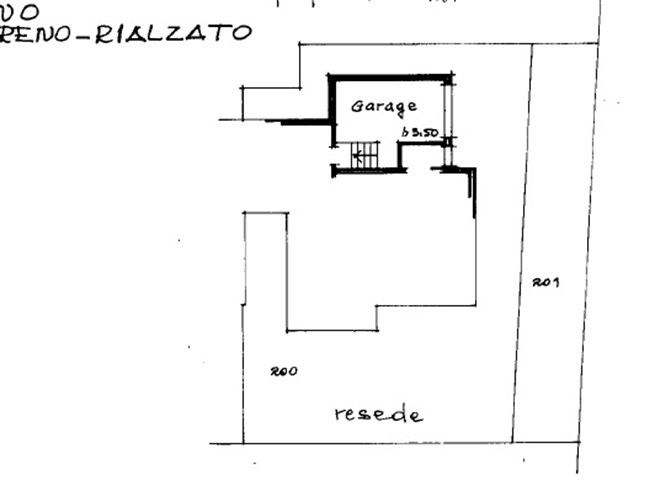 PIANO TERRA : Accesso da un resede privato di circa 90 mq. - cucina abitabile - sala doppia con terrazza che può accedere al giardino privato – bagno finestrato – garage di mq. 18 con accesso sia esterno che interno – stanza a uso locale caldaia.