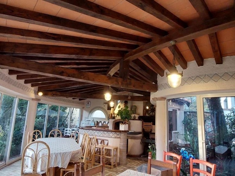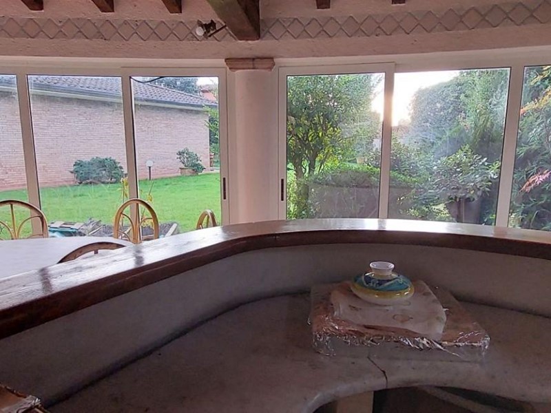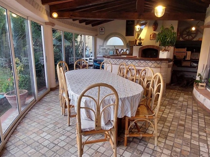 All'interno del giardino è stato realizzato un bel gazebo in muratura chiuso con pannelli, di circa mq. 43, con bel forno a legna e spazio per tavoli, perfetto per pranzi e cene nella bella stagione, ma anche nel periodo invernale.