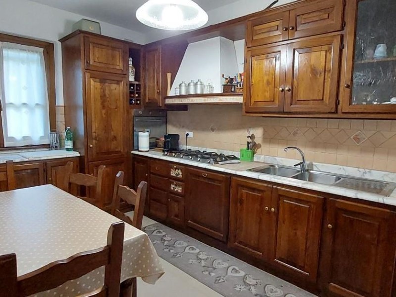 Si compone di un'ampia sala con zona soggiorno e sala da pranzo con caminetto e con accesso a porticato, attigua cucina abitabile, tutta arredata con mobili su misura ed accesso ad altro porticato, un servizio con aspirazione.