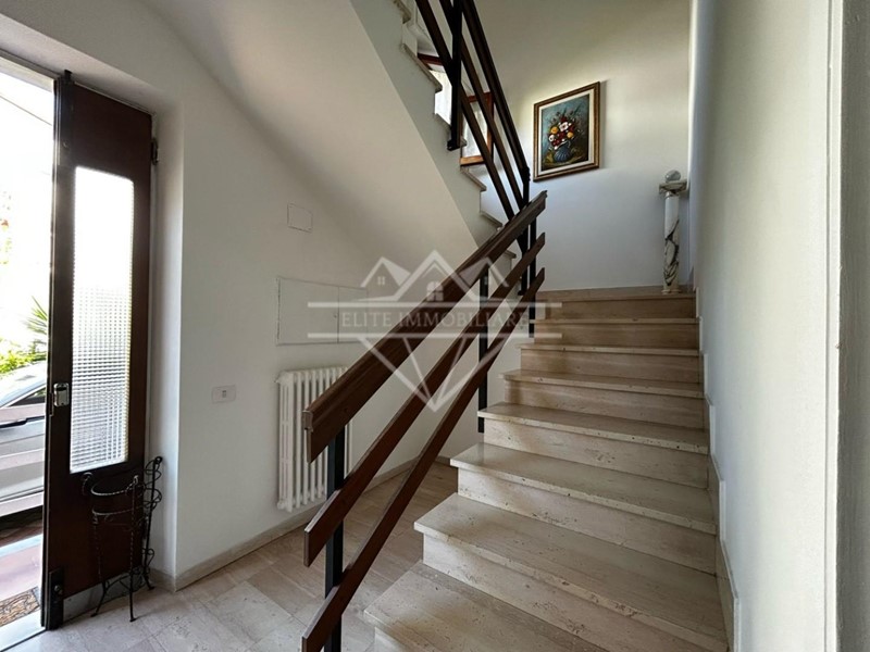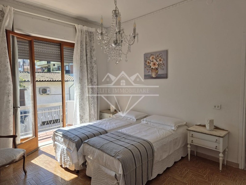 La casa si trova in una zona di Marina di Carrara, molto tranquilla e riservata, frequentata principalmente da residenti, pur essendo vicina a molti servizi. E’ circondata da un giardino accessibile tramite cancello elettrico con possibilità di parcheggio interno; è divisa in due appartamenti indipendenti, ai quali si accede da una scala interna in marmo botticino. L’appartamento al primo piano è di circa 80 mq, così composto: ingresso, cucina abitabile, sala,