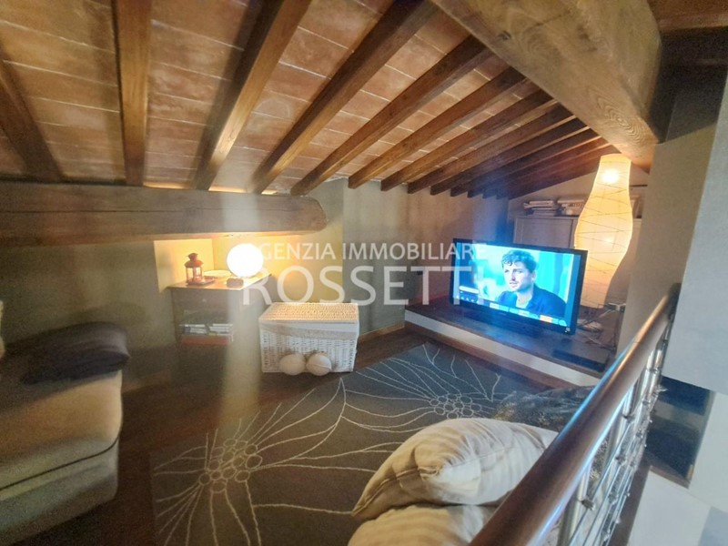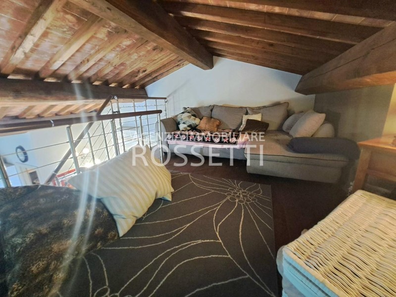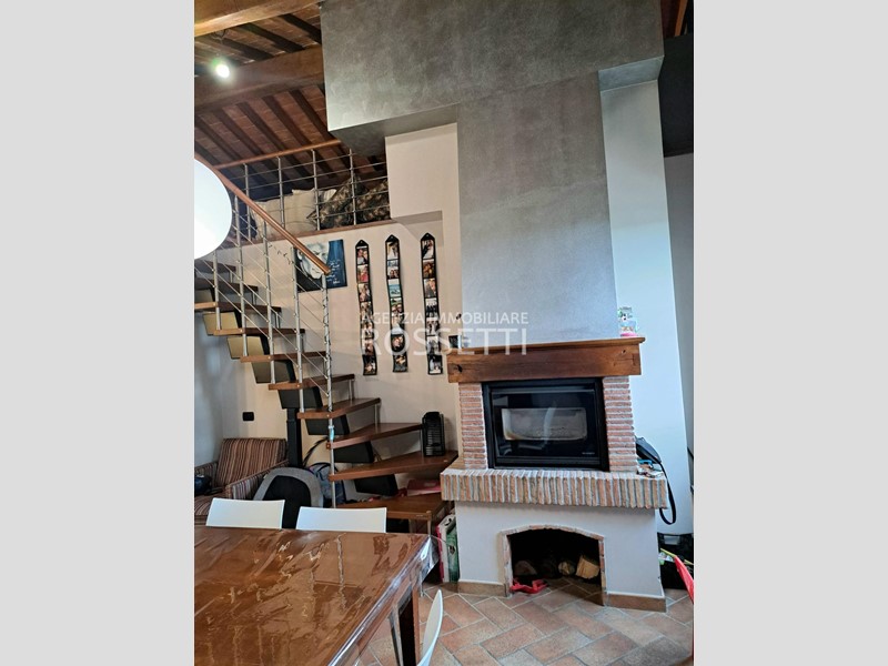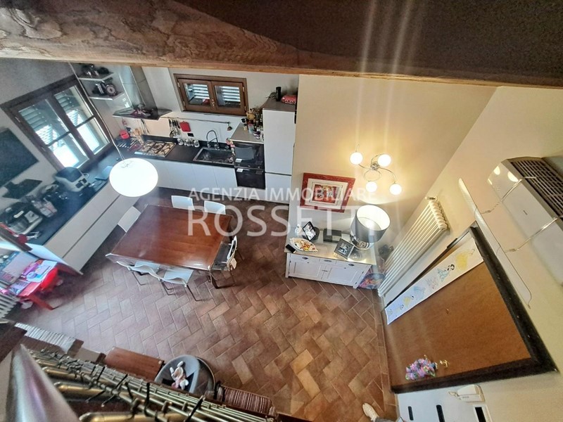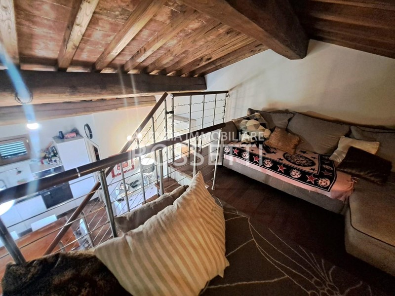 soggiorno angolo cottura, caminetto e scala di arredo per il soppalco con angolo tv, camera, studio adibito a cameretta, bagno con finestra, ripostiglio adibito a lavanderia ed ampia ed utile soffitta sottotetto.