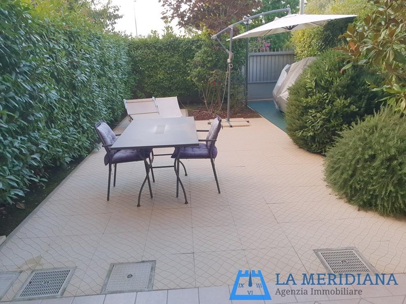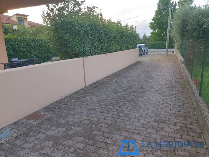 All'esterno resede piastrellato con aiuole e siepe circostante oltre ingresso da cancello carrabile indipendente.