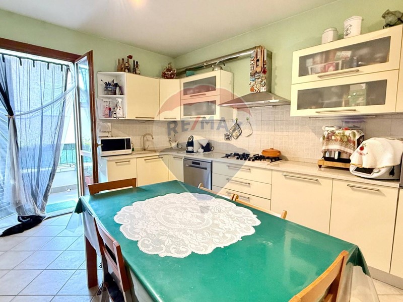 Piano primo: ingresso che conduce a una luminosa cucina abitabile con soggiorno con accesso diretto al balcone, ideale per pranzi allaperto o momenti di relax.