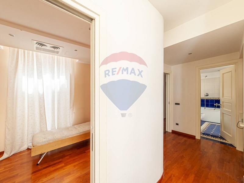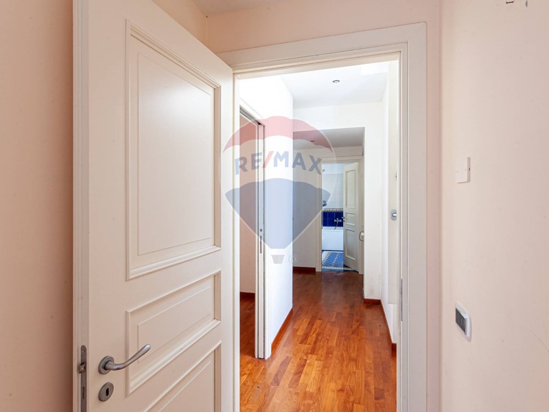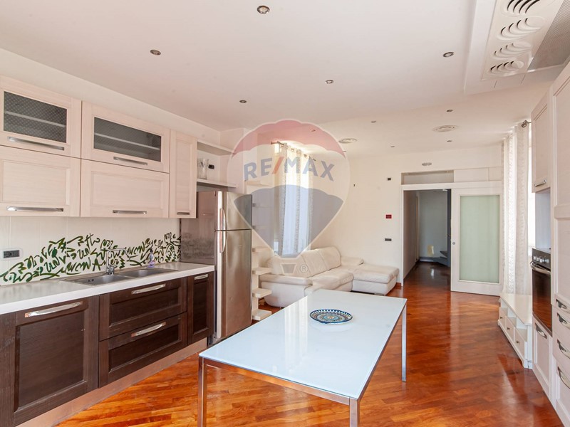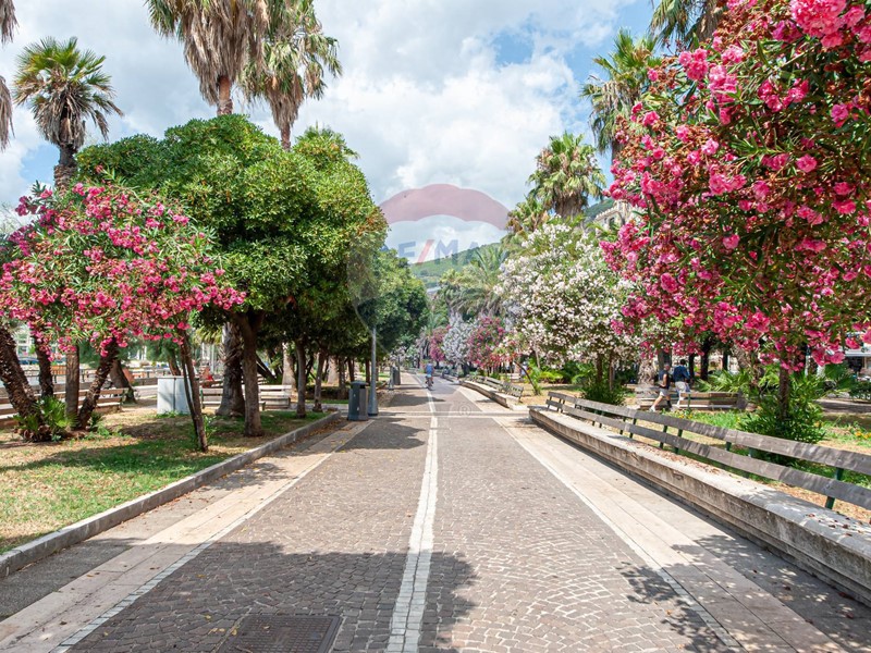 L'immobile si apre su unampia zona giorno composta da un salone con cucina a vista, arricchito da un balcone con splendida vista panoramica sul borgo antico e con scorcio di mare. La zona notte include due spaziose camere matrimoniali e un ampio bagno finestrato.