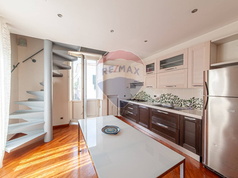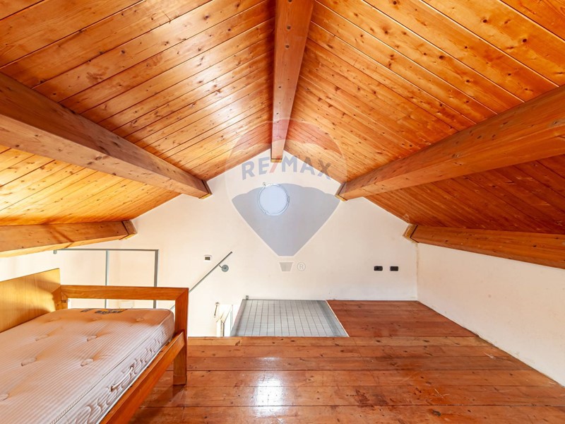 Una comoda scala interna conduce al livello superiore, dove si trovano due locali sottotetto, ideali come studi, stanze per gli ospiti o spazi relax, e un incantevole terrazzo vivibile, perfetto per godere della tranquillità e della suggestiva vista sui tetti del centro storico.