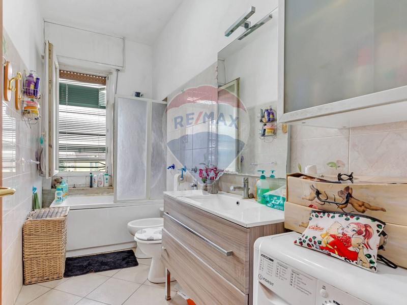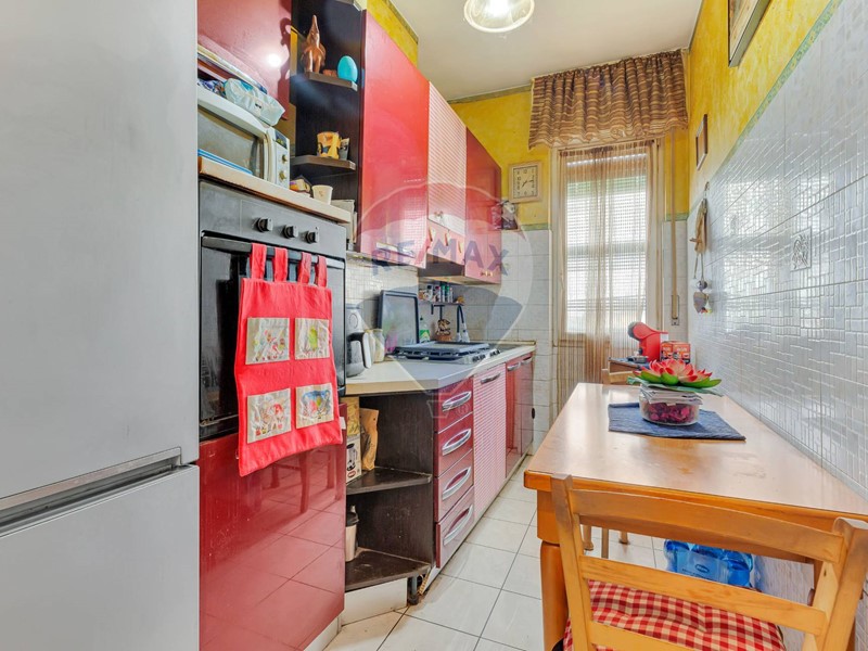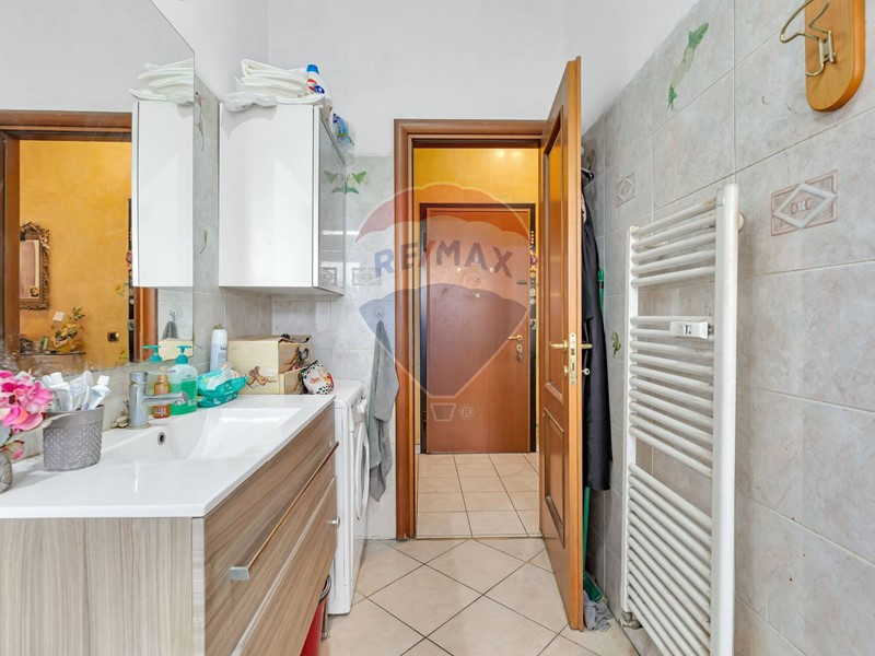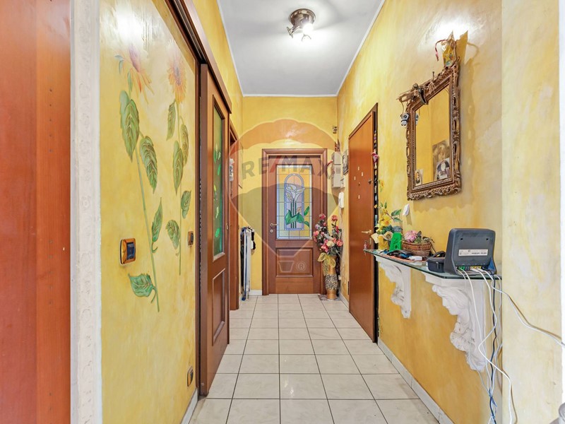 Dall'ingresso si accede direttamente nel corridoio, sul quale si affacciano il soggiorno grande e luminoso sulla sinistra e la cucina abitabile e il bagno finestrato con vasca/doccia di fronte; sulla destra invece una porta divide la zona giorno dalla zona notte composta da due camere di 14 mq ciascuna. Le seconda camera gode di un bel balcone.