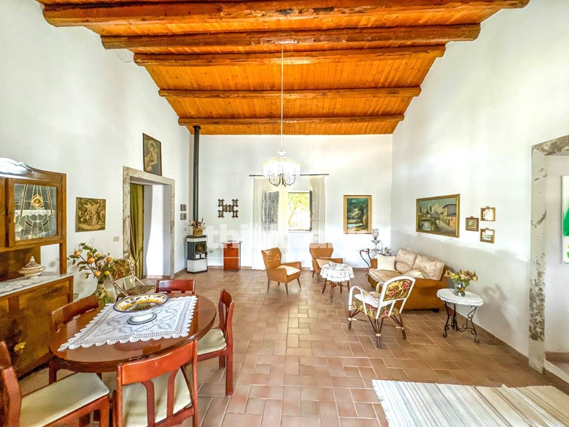Il casale, risalente al 1930, conserva tutto il fascino dellarchitettura rurale siciliana ed è inserito in un terreno di 8,3 ettari interamente piantumato. La superficie abitativa principale è di 201 mq su un unico livello, affiancata da una dependance di 70 mq con garage e magazzino, perfetta come spazio di servizio o laboratorio.