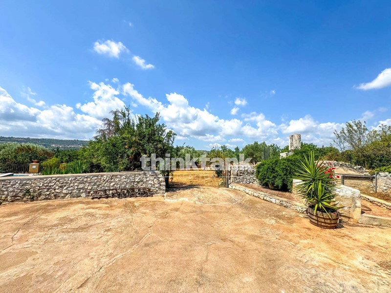 In vendita autentico casale siciliano dei primi del 900 con piscina, terreno agricolo produttivo e panorami mozzafiato sulle colline di Canicattini Bagni, a pochi chilometri da Siracusa e Noto.