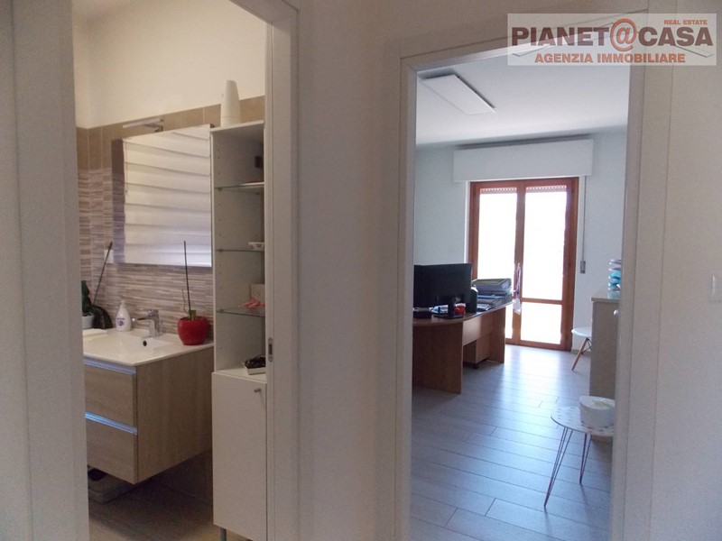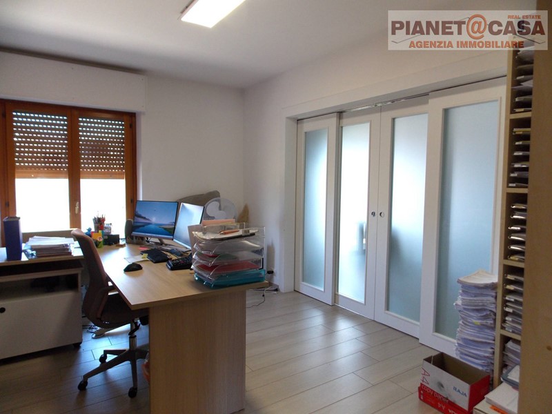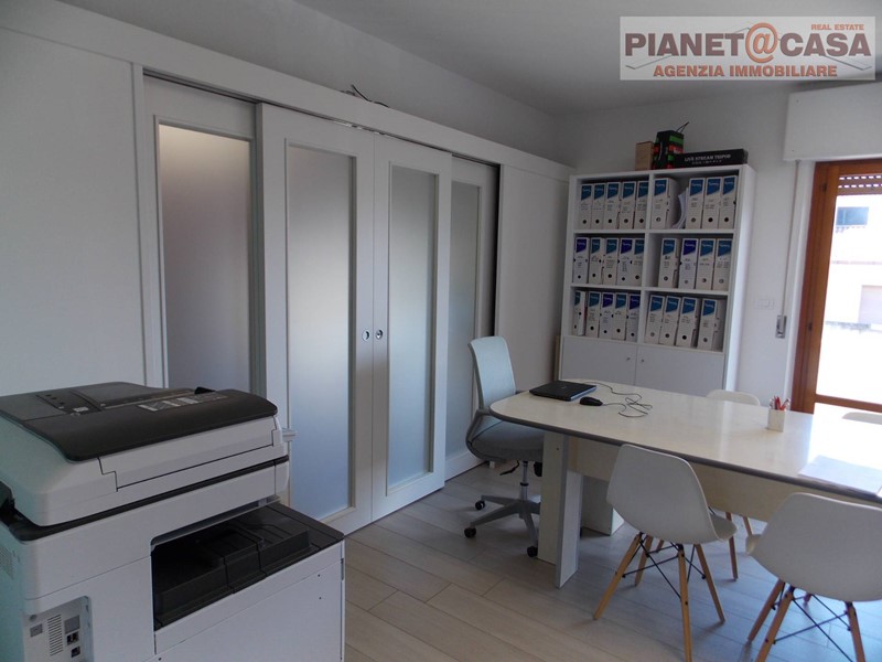L' immobile, posto al Secondo Piano senza ascensore in palazzina in buono stato di manutenzione è attualmente adibito ad ufficio, ma è comunque composto da ingresso su disimpegno, soggiorno, cucina abitabile, tre camere matrimoniali, due bagni ed un ripostiglio, oltre a Terrazzo lastricato a livello.