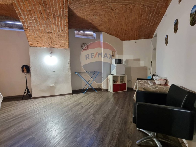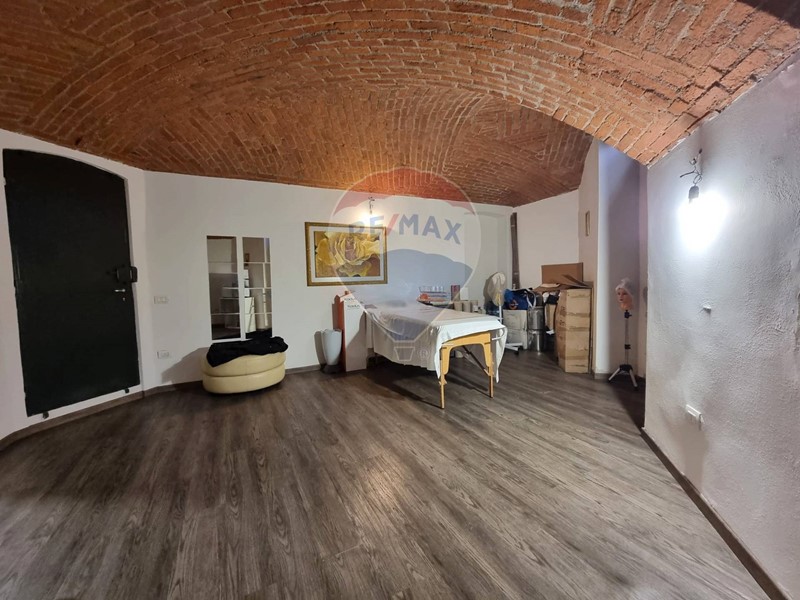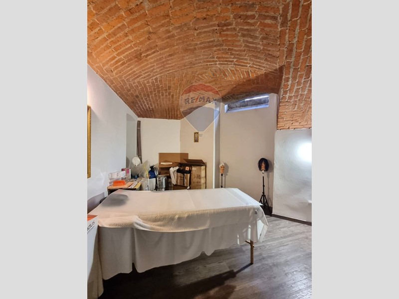 Una scala interna conduce al piano interrato, dove si sviluppa un secondo ambiente con soffitti in mattoni a vista, attualmente utilizzato come spazio estetico o massaggi, ma adattabile anche a magazzino o zona trattamenti.