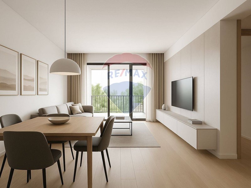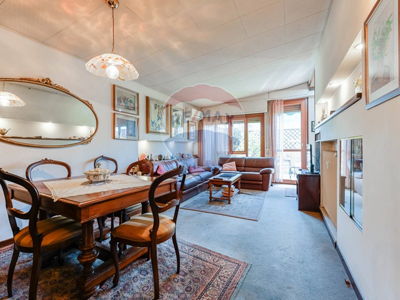 Lingresso si apre su un ampio e luminoso soggiorno, reso particolarmente arioso dalla presenza di una porta finestra e da due grandi finestre che affacciano direttamente sul terrazzo, garantendo un'eccellente illuminazione naturale.