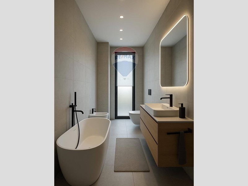 L'immobile dispone di aria condizionata, serramenti in legno/alluminio con doppio vetro e riscaldamento centralizzato a radiatori.