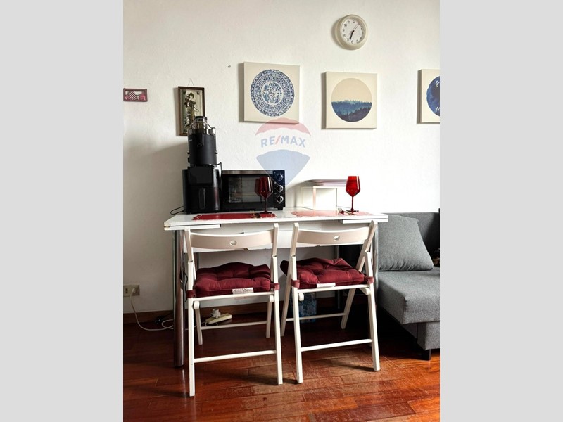Lappartamento si presenta in ottimo stato e viene affittato completamente arredato. Lingresso si apre su un piccolo disimpegno che conduce alla zona giorno/notte, caratterizzata da cucina a vista e letto matrimoniale contenitore a ponte. Il bagno è dotato di box doccia.