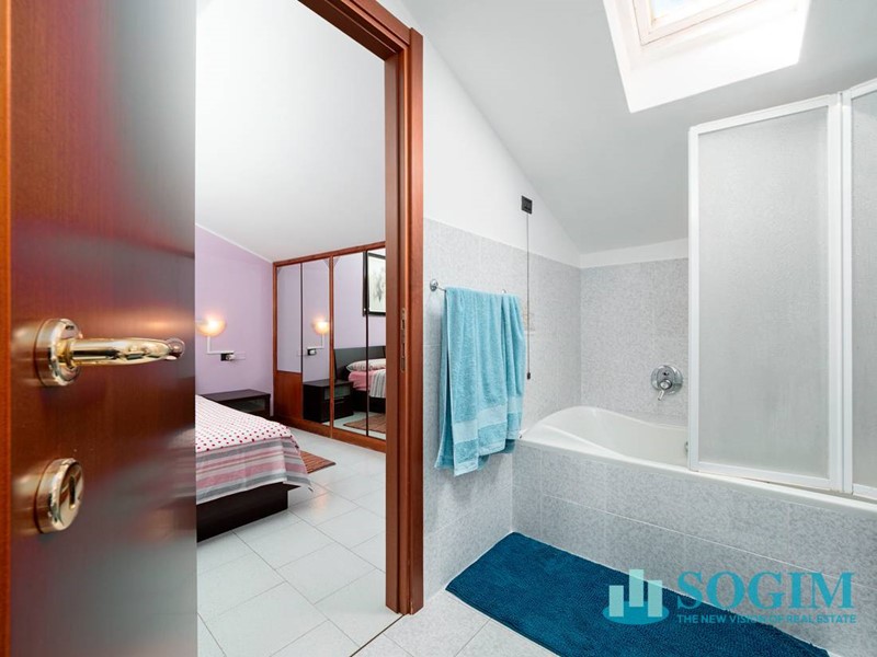 Al secondo piano si articola la zona notte con 3 locali adibiti a camere da letto di cui una matrimoniale - doppi servizi, entrambi finestrati, e ripostiglio sottotetto ,è inoltre presente l'accesso a un grande terrazzo di 15 mq da poter utilizzare come solarium nei mesi più caldi.
