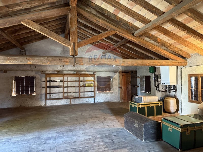 - Piano secondo: ampia soffitta con capriate e travature in legno.